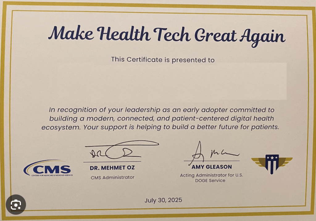 So here we are in 2025, and CMS and the White House have organized another pledge. EHR vendors promise to "kill the clipboard." Twenty-one health information exchanges commit to adopting new CMS interoperability frameworks. AI and digital identity companies pledge to deliver new tools.